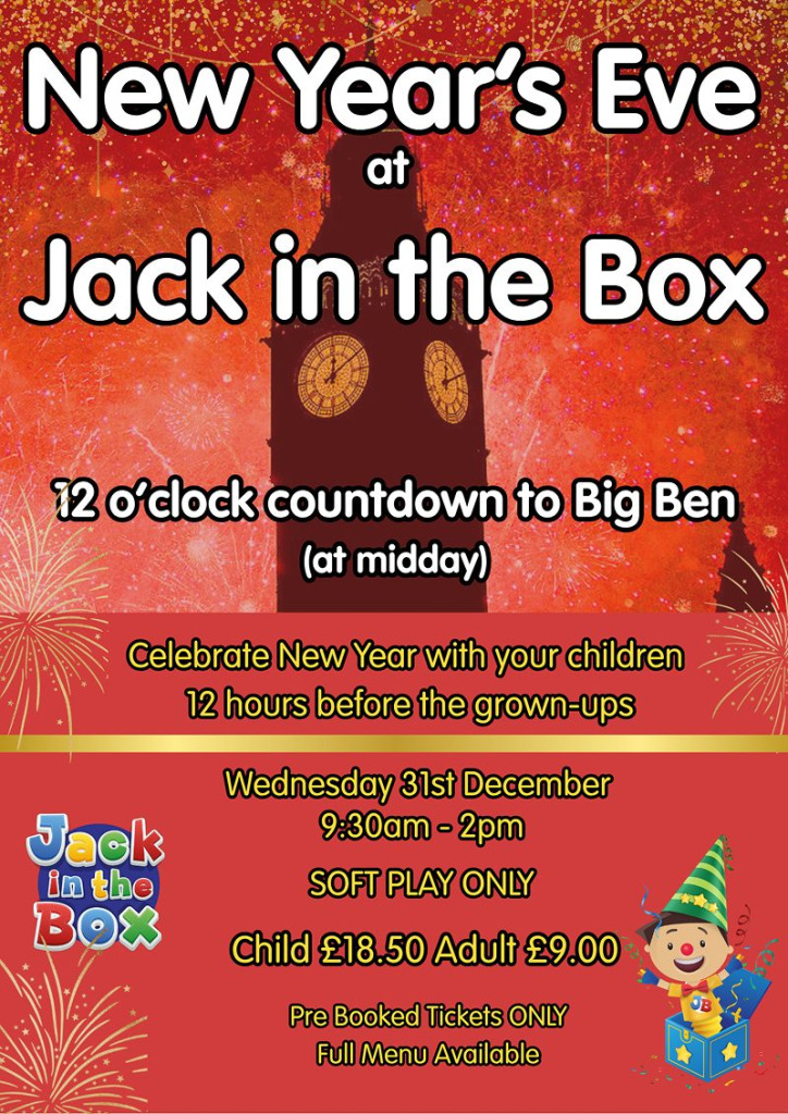 Celebrate the start of a brand-new year with a bang at Jack in the Box in Beverley! Our exciting New Year’s Eve Party is the perfect way for families to come together and make magical memories as we welcome the New Year in style. Packed with fun, laughter, and plenty of play, it’s a celebration your little ones will never forget. Join us for a joyful countdown to Big Ben at midday – 12 hours before the grown-ups ring in the New Year!
